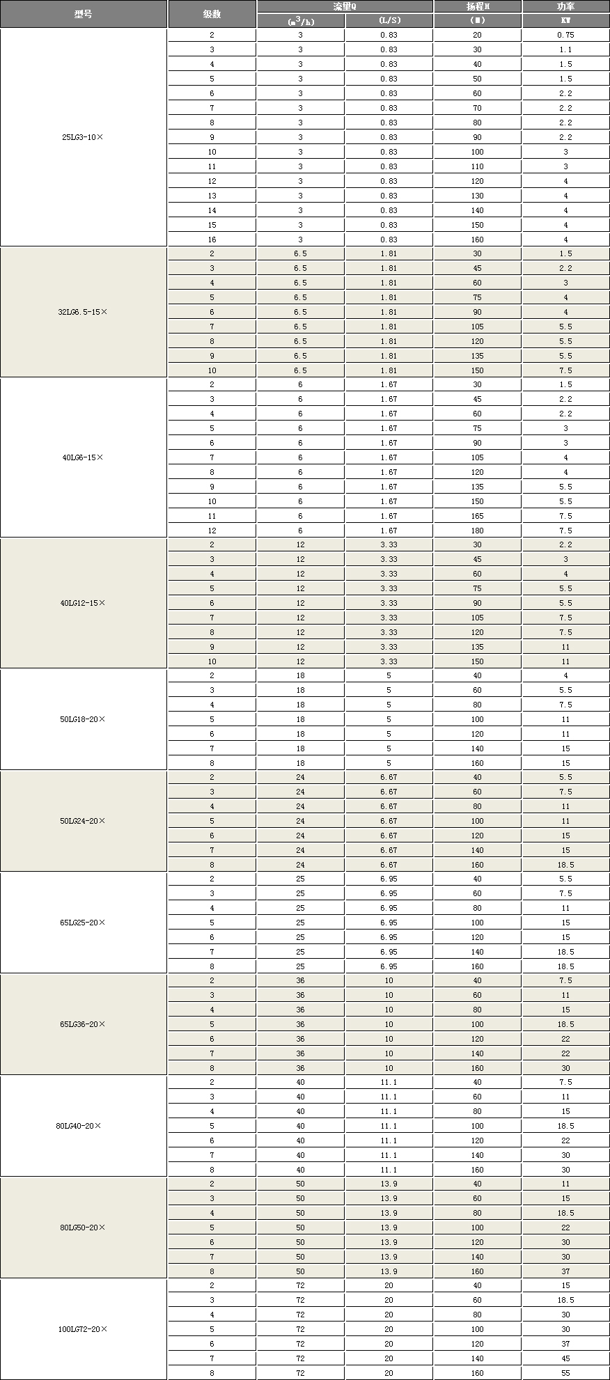 產品型號:LG型立式多級離(lí)心泵