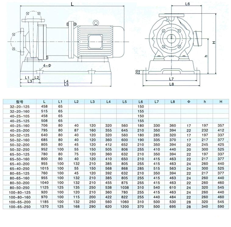 CQB係列磁力泵型式及基本參數(shù)符合JB/T 7742—1995《小型磁力驅動離心泵型式與基本參數》標準和(hé)《小型磁力驅(qū)動離心泵三個標準的補充規定》。