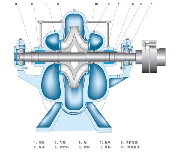 EPOW型/S型雙吸中開泵產品結構圖: