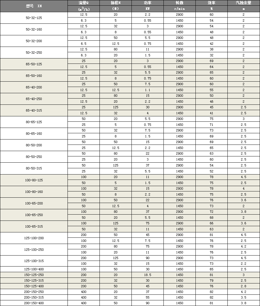 IH型係(xì)列泵有29個基(jī)本型,其中22個雙速(2900、1450r/min)經過A、B兩種型(xíng)式的葉(yè)輪直徑(jìng)切割變型後,達112個規格。